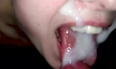 Sexy hussie with dick deepthroating eyes gives me a long and sloppy fellatio that makes me cum in her gullet