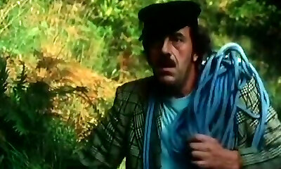 un chasseur rencontre pocahontas et lui lance la gorge avec un énorme sifflet de boeuf