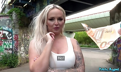 Tattooed blond slut Louise Lee fucked in the public place