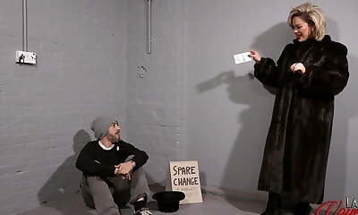 Lucky homeless dude jerks off while watching Harli May strip