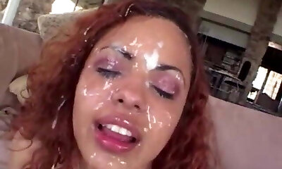 Unusual peach gets cum-shot on her face gulping all the love juice