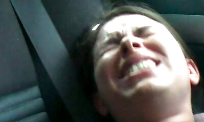 Desperate woman pee in car