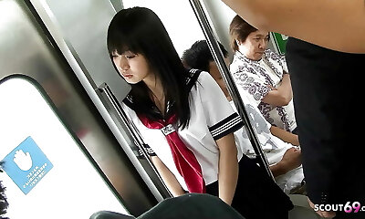 Public Gang-bang in Bus - Asian Teen get Banged by many old Guys