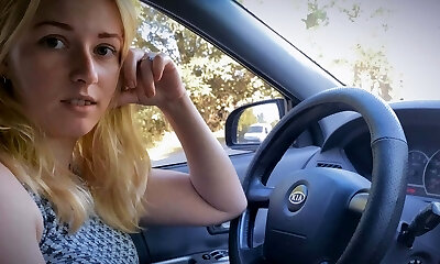 Toothy blond girl Beatrix Glover gives a blow-job in the car