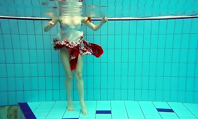 steamy rossa modello marketa di nuoto a nudo in una piscina