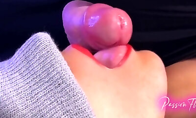 Foreground Mouth Eating Cum! A Great Blowjob
